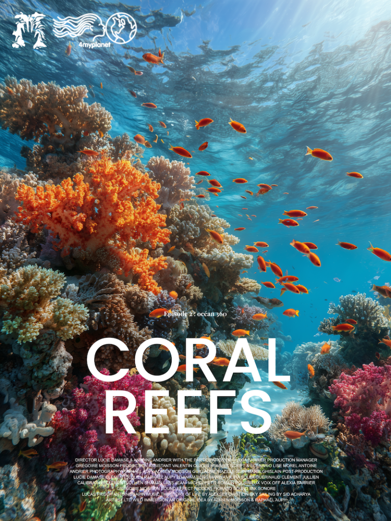 In this 360° dive into the heart of the oceans, explore the richness of marine life, from coastal zones through coral reefs to the open ocean. The oceans and their inhabitants, marine mammals, fish, and cephalopods are now under threat from global warming, which is disrupting marine ecosystems and their role as the planet’s lungs.